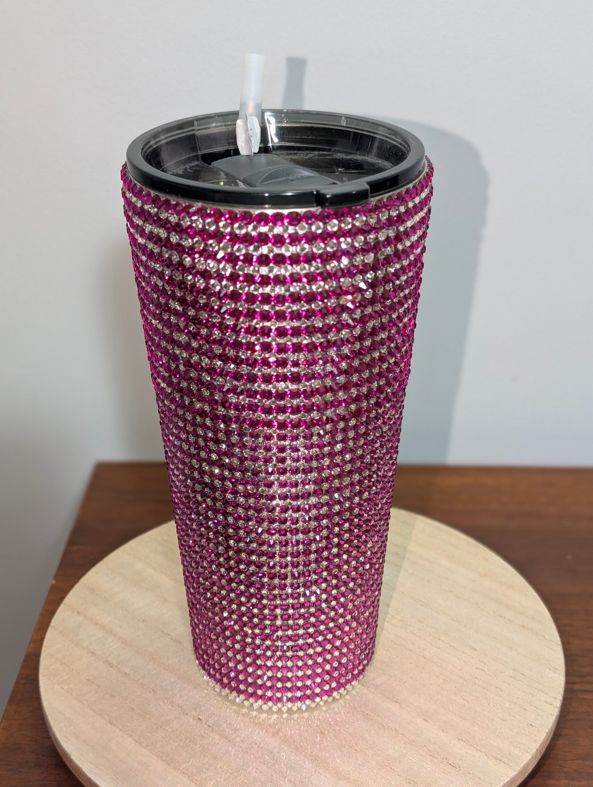 Brighten up your hydration routine with our stunning 32oz tumbler in hot pink, accented with dazzling silver rhinestones. This tumbler is the perfect blend of style and practicality, making it a must-have for anyone who loves a pop of color!